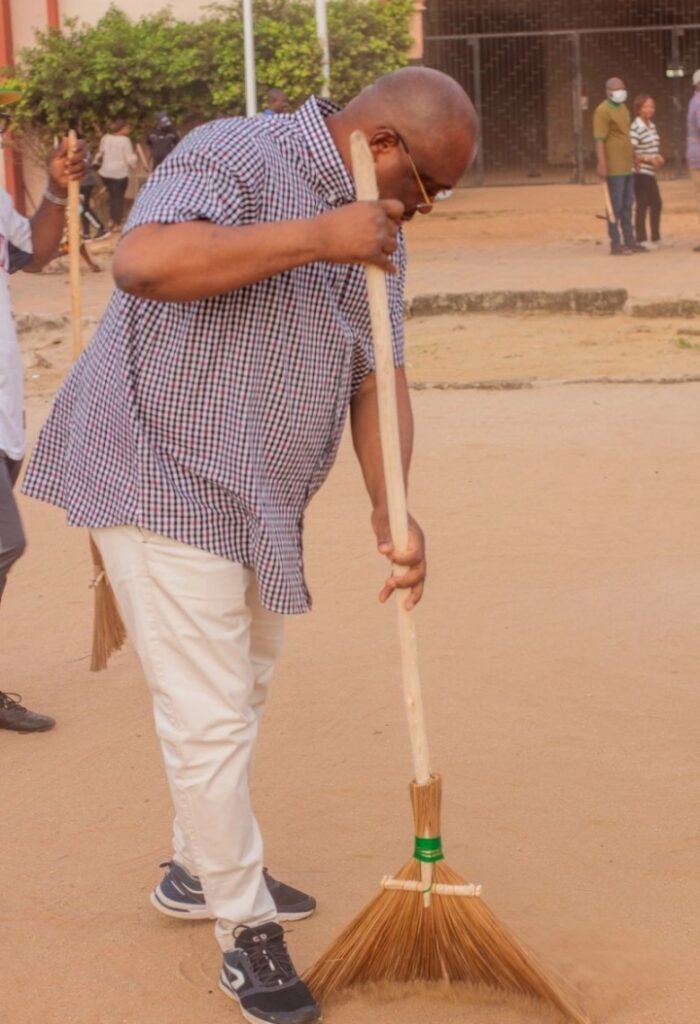 Leadership en actes : Pas de costume, mais un râteau, Nathanaël Koty brise le protocole, montre la voie et balaie les habitudes à Abomey-Calavi