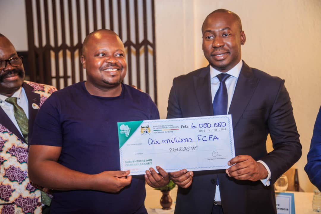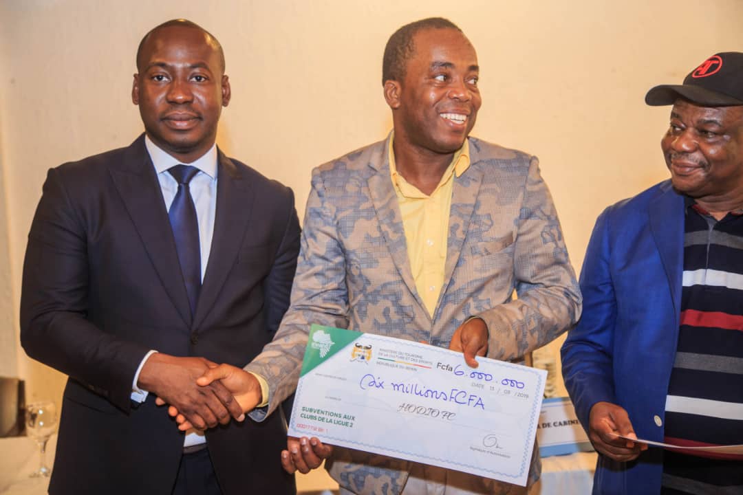 Insuffler une nouvelle dynamique au Sports et notamment au sport roi, est un rêve pour le Gouvernement du Bénin. Ce rêve se concrétise chronologiquement et méthodiquement grâce à la détermination du Ministre du Tourisme, de la Culture et du Sport, Oswald Homeky. Et pour preuve, le jeune ministre en charge des Sports au Bénin a procédé ce mercredi 13 mars 2019, à la remise de chèques aux clubs de différentes divisions du championnat de football au Bénin.
