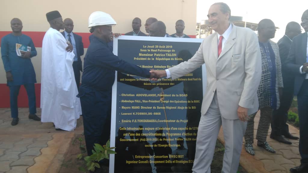 La centrale électrique de Maria-Gléta 2 est un projet majeur qui fait rentrer le PAG dans les annales de l’histoire du Bénin. Sa concrétisation est le respect de l’engagement de Patrice Talon dans le secteur de l’énergie. Le dire et le faire, c’est ce qu’en témoigne son inauguration ce jeudi 29 août par le ministre d’État Abdoulaye Bio Tchané accompagné par le ministre béninois de l’énergie Dona Jean-Claude Houssou, en présence des Partenaires Techniques au développement dont le Coordonnateur du MCA-Bénin 2, Gabriel Dégbègni avec à leur tête le président de la Banque Ouest-Africaine de Développement (BOAD), Christian Adovèlandé. « La réalisation de cette centrale a nécessité la mobilisation de 107,5 milliards de francs CFA, dont 10 milliards auprès de la BOAD », a souligné le président de la Banque Ouest-Africaine de Développement Christian Adovèlandé. Le N°1 de la BOAD a salué la synergie d’actions entre les différents bailleurs de fonds du projet. « Je voudrais (…) encourager tous les Partenaires Techniques et Financiers du Bénin à multiplier ce type d’initiatives pour accompagner le Bénin dans la mise en œuvre des différents projets du PAG. », a émis Christian Adovèlandé.
