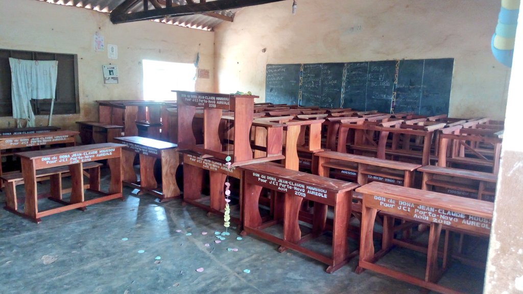 « Le Bénin nous appartient tous », Me Séverin Maxime Quenum. Fort de cette expression du Garde des Sceaux, ministre béninois de la Justice, des Droits de l’Homme et de la Législation du gouvernement 2 de Patrice Talon, la traduction en acte a été auréolée ce week-end dans la capitale du Bénin, Porto-Novo par un autre membre de ce gouvernement béninois. En parrainant le mandat 2019 de la Jeune Chambre Internationale (JCI) Porto-Novo Auréole présidée par Ella Guèdègbé ce samedi 31 août, il a donné une joie immense à la fois aux parents d’élèves, écoliers et enseignants dans le plus grand arrondissement de la ville capitale. En effet, le ministre béninois de l’énergie Dona Jean-Claude Houssou a fait de son parrainage un moment indélébile. En cause, dans le cadre du projet « Agir pour la vie », Dona Jean-Claude Houssou a immortalisé l’acte 1 en faisant don de soixante (60) tables et bancs à l’École Primaire Publique (EPP) de Dowa Gbago, dans le 5ème arrondissement de Porto-Novo. La cérémonie de remise de cette œuvre sociale a connu la présence des responsables et d’Association des Parents d’Élèves (APE) de l’EPP Dowa Gbago, des responsables de la JCI Porto-Novo Auréole et bien évidemment des heureux bénéficiaires du don, à savoir les écoliers de l’EPP Dowa Gbago.