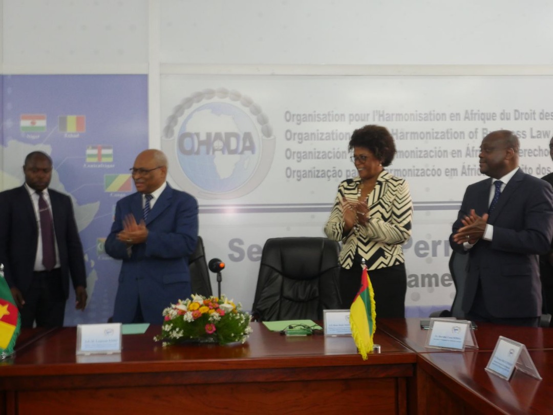 Le Secrétariat Permanent (SP) de l’Organisation pour l’Harmonisation en Afrique du Droit des Affaires (OHADA) change de tête. La passation de cette administration au niveau de l’Organisation a eu lieu dans la capitale camerounaise, Yaoundé. C’est la salle de conférences de l’institution qui a servi de cadre pour la cérémonie de passation de service qui s’est déroulé le 30 août dernier entre les deux Secrétaires Permanents, le sortant, Professeur Dorothé Cossi Sossa, et l’entrant, Professeur Emmanuel Sibidi Darankoum. La cérémonie a été placée sous la présidence du Garde des Sceaux, Ministre d’État bissau-guinéen, chargé de la Justice et des Droits de l’Homme, Ruth Monteiro, accompagné pour la circonstance de son homologue camerounais Laurent Esso. Elle a été rehaussée par la présence du président de l’autre institution de l’OHADA, la Cour Commune de Justice et d’Arbitrage (CCJA) basée en Côte d’Ivoire, Appolinaire César Ondo Mve. Il faut aussi noter la présence remarquable du N°1 de l’École Régionale Supérieure de la Magistrature (ERSUMA), également une des institutions de l’Organisation basée elle a Porto-Novo dans la capitale béninoise, le Professeur Mayatta Ndiaye Mbaye.