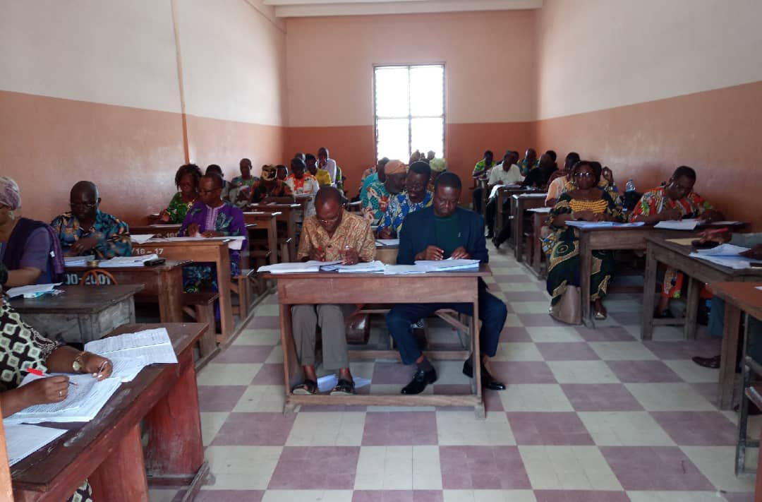 La correction des copies des enseignants reversés de 2008 et les aspirants au métier d’enseignant est l’étape qui a suivi évaluation diagnostique de ces derniers le samedi 24 août dernier. Ce mardi 03 septembre, les autorités en charge de l’éducation nationale au Bénin, notamment les ministres Marie-Odile Atanasso et Thomas Mahougnon Kakpo, respectivement Ministre de l’Enseignement Supérieur et de la Recherche Scientifique (MESRS) et Ministre des Enseignements Secondaire, Technique et de la Formation Professionnelle (MESTFP) ont effectué une descente au Lycée Technique Coulibaly de Cotonou, centre retenu sur le plan national pour la correction de ladite évaluation. L’explication donnée à leur descente est la nécessité du constat par eux-mêmes de l’évolution et du niveau d’avancement de la correction des copies des enseignants reversés en 2008 et des aspirants au métier d’enseignant. « Nous avons sillonné toutes les salles. Nous avons rencontré les enseignants correcteurs. », a déclaré Thomas Mahougnon Kakpo. « (…) Et nous avons pris le niveau de la correction. », a-t-il ajouté. À l’en croire, tout se passe sans anicroche.