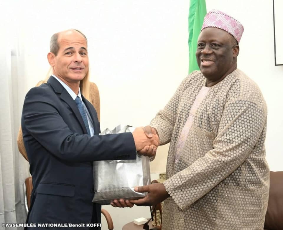 Le vice-ministre des Relations Extérieures du gouvernement de Cuba, Rogelio Siera Diaz, était au cabinet du président de l’Assemblée nationale du Bénin, Col Louis Gbèhounou Vlavonou au Palais des Gouverneurs à Porto-Novo ce mercredi 11 septembre. Le N°2 des relations extérieures cubain était pour la circonstance accompagné d’une délégation composée des autorités cubaines dont l’ambassadrice de la République de Cuba près le Bénin, Yenielys Vilma Regueiferos Linares. Ce déplacement de Porto-Novo des autorités cubaines s’inscrit dans le renforcement des relations entre le peuple béninois incarné par le Parlement sous l’autorité du président Col Louis Gbèhounou Vlavonou et le peuple cubain représenté par le vice-ministre des Relations Extérieures de son gouvernement, Rogelio Siera Diaz.