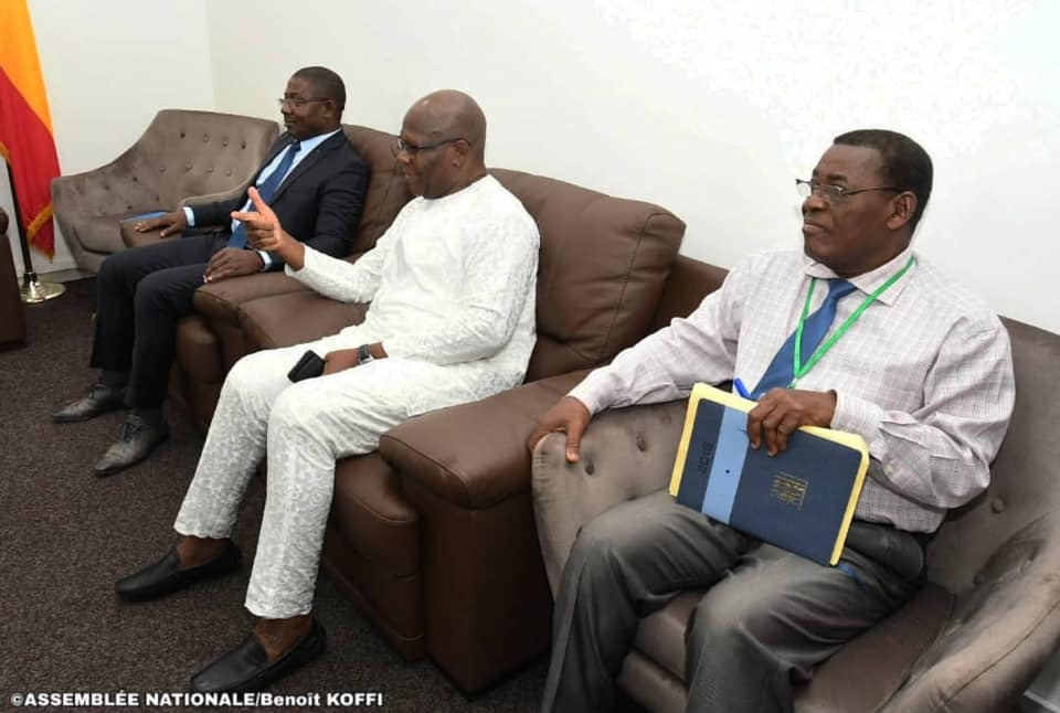 Photo : Le vice-ministre des Relations Extérieures du gouvernement de Cuba, Rogelio Siera Diaz et la délégation cubaine accueillie par le Président de l’assemblée nationale, Col Louis Gbèhounou Vlavonou – Source : Assemblée nationale du Bénin