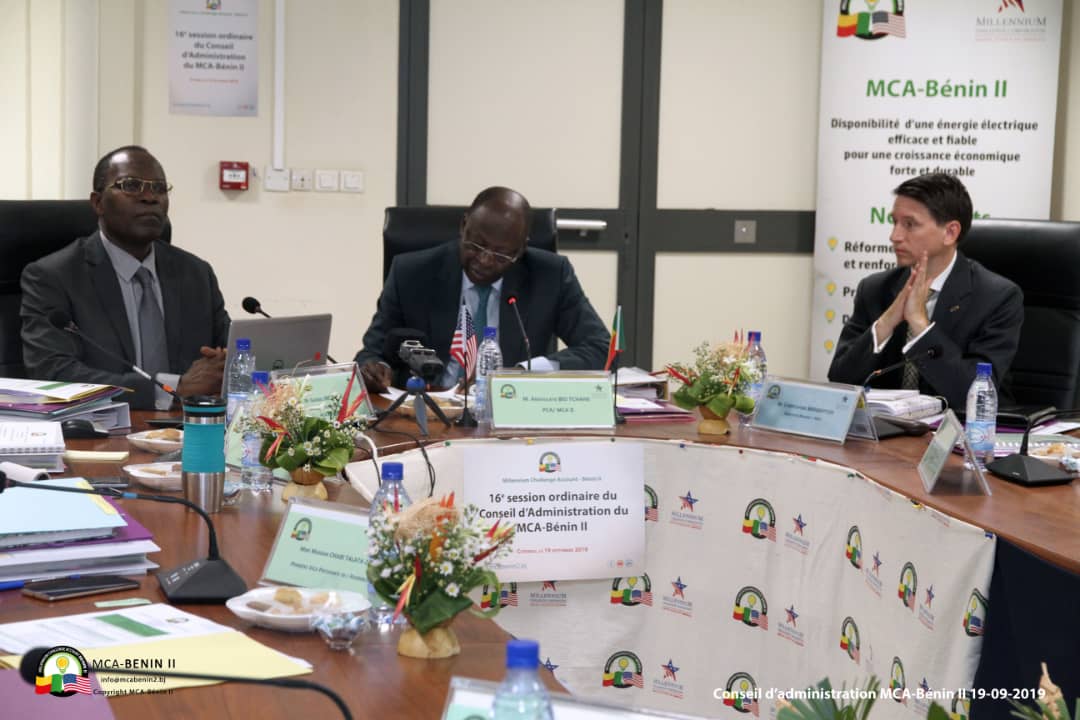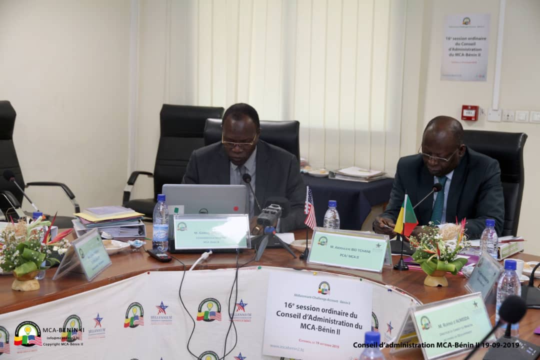 Ce jeudi 19 septembre, le Millenium Challenge Account deuxième programme pour le Bénin (MCA 2) a tenu la 16ème session ordinaire de son Conseil d’Administration (CA) à son siège, Cotonou, capitale économique du Bénin. L’ouverture des travaux de ladite session a été placée sous la présidence du Président du Conseil d’Administration du MCA-Bénin 2, le ministre d’État béninois, chargé du Plan et du Développement, Abdoulaye Bio Tchané. En présence du Coordonnateur du MCA-Bénin 2, Gabriel Dégbègni, les administrateurs ont passé en revue les demandes de décaissement des différentes ressources financières du Programme pour le compte du trimestre d’octobre à décembre 2019 ainsi que les rapports subséquents. La 16ème session ordinaire du CA du MCA-Bénin 2 a été l’occasion pour les administrateurs d’examiner le plan de passation des marchés pour la période du 1er octobre 2019 au 30 septembre 2020.