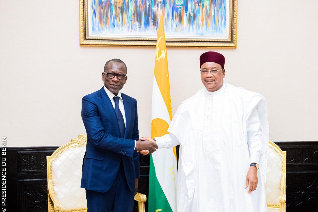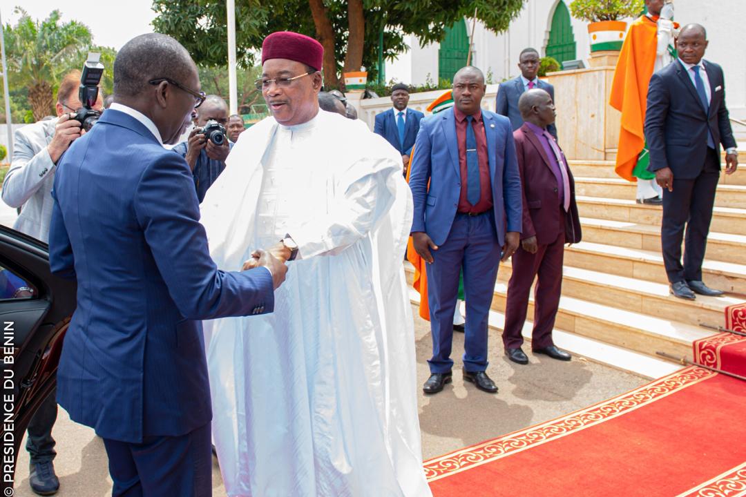 Quelques heures après sa participation à la réunion du Comité de haut niveau sur le financement de la sécurité dans l’espace UEMOA tenue jeudi 3 octobre à Dakar au Sénégal où il a été mandaté par l’organisation sous-régionale, le lendemain, le chef de l’État béninois Patrice Talon a effectué une brève visite de travail au Président en exercice de la Communauté Économique des États de l’Afrique de l’Ouest (CEDEAO) à Niamey au Niger. Bien reçu par son homologue nigérien, Mahamadou Issoufou, l’audience de travail des deux dirigeants ouest-africains s’est articulé autour de trois gros points préoccupants ce vendredi 4 octobre :