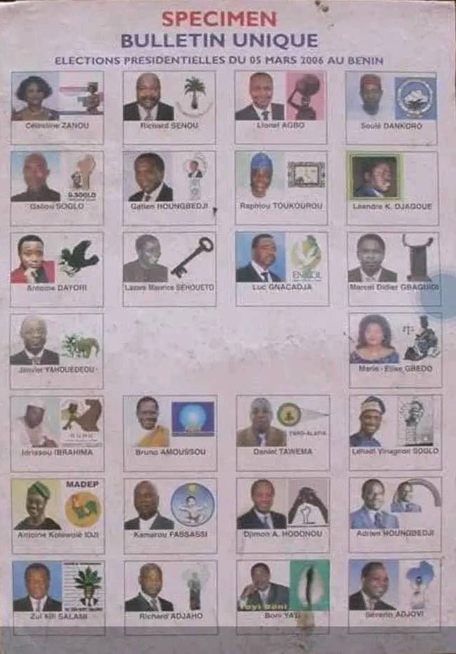 Pour participer à l’élection du duo Président et Vice-président de la République du Bénin, en avril prochain, le candidat désigné aura pour colistière Célestine Zanou. Cette dernière est aussi une figure emblématique de la politique béninoise au regard de ses tentatives à brigué la magistrature suprême du pays à l’occasion des précédentes courses à La Marina. La colistière a été candidate à la présidentielle du 5 mars 2006 au Bénin avec la position N•1 sur le spécimen du bulletin unique, comme vous pouvez le voir dans l’image ci-dessous.