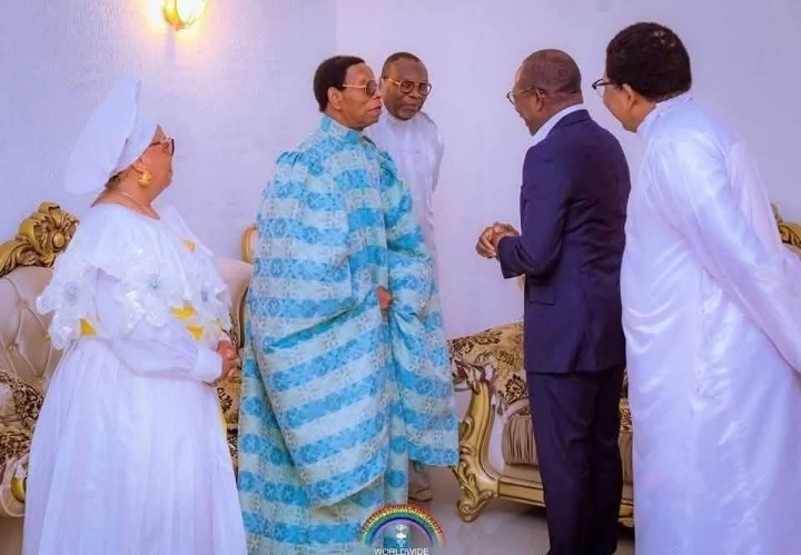 Photo : Le président Patrice Talon et Emmanuel Mobiyina Oshoffa, fils du Prophète Samuel Bilewu Joseph Oshoffa, à Porto-Novo