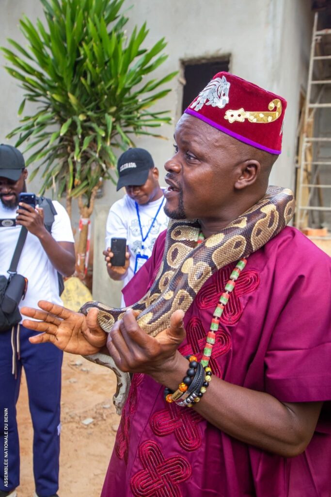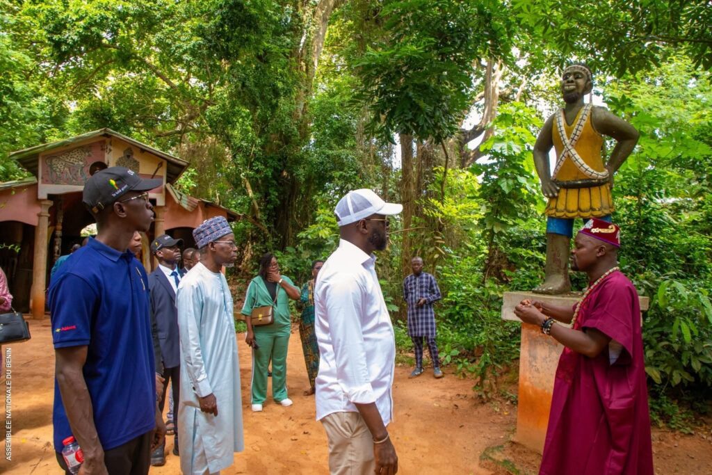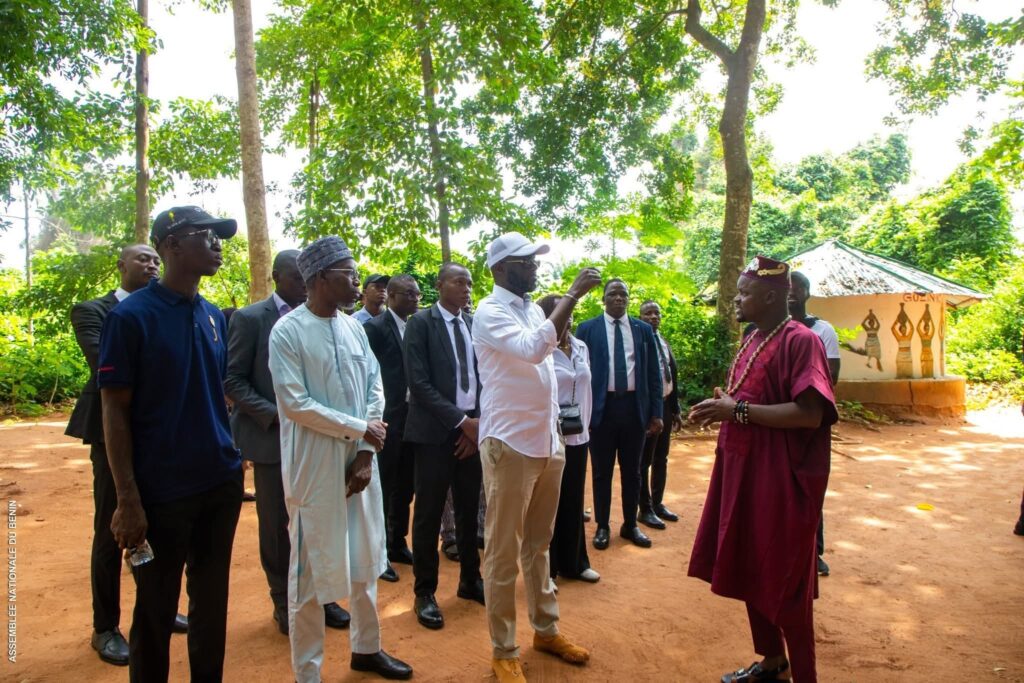 La prochaine étape de cette visite touristique a été la forêt sacrée de Kpassè, qui était autrefois la ferme du roi. Après avoir franchi le seuil du portail de cette forêt, l’honorable député a eu droit à la présentation des divinités sur les lieux ainsi qu’à l’historique de cette forêt sacrée et du règne du roi Kpassè, le nom que porte la forêt. D’après les explications du guide touristique, El Malick Ndiaye a noté que le roi était le deuxième souverain de Savi et fondateur du royaume houéda, qui, au milieu du XVIIᵉ siècle, disparut puis réapparut miraculeusement dans le pied d’un arbre d’Iroko, situé au cœur de la forêt, toujours debout jusqu’à présent. C’est au regard de ce mystère que la forêt tire sa sacralité et de nos jours, est un musée à ciel ouvert.