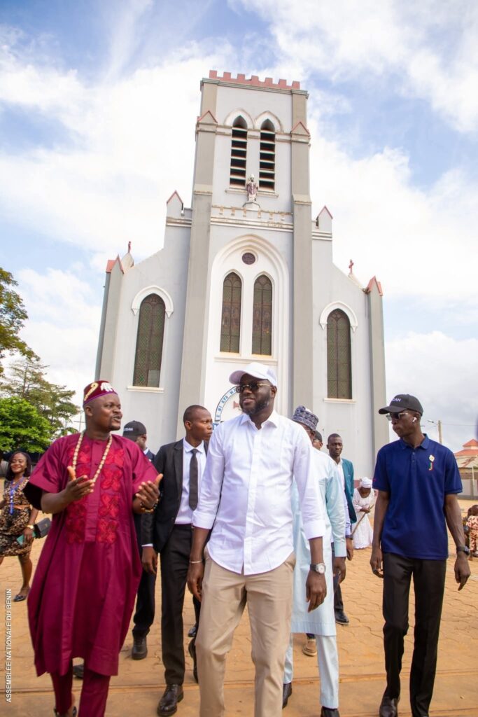 El Malick Ndiaye a mis pieds dans ce dernier lieu chargé d’histoire pour avoir l’historique du Temple des Pythons à l’aide du guide touristique, Nadal Gbossa. Avant de sortir de ce site, l’autorité parlementaire sénégalaise a apposé sa signature au bas du livre d’or réservé à des visites de marque. La rédaction differenceinfobenin.com et celle du journal quotidien « Différence Info » du Groupe de presse « DIFFÉRENCE », ici à Porto-Novo,  ont pu avoir un extrait de ses orthographes. « À Ouidah, je me suis senti chez moi. », a écrit El Malick Ndiaye. Une fois sorti, ses yeux ne pouvaient pas éviter l’imposante architecture de l’Église catholique devant laquelle il marque un arrêt. Le patron du perchoir de l’hémicycle sénégalais a exprimé sa joie de voir la cohabitation pacifique qui existe entre les trois religions sur un même périmètre. C’est dans cette réjouissance que sa visite s’est poursuivie.