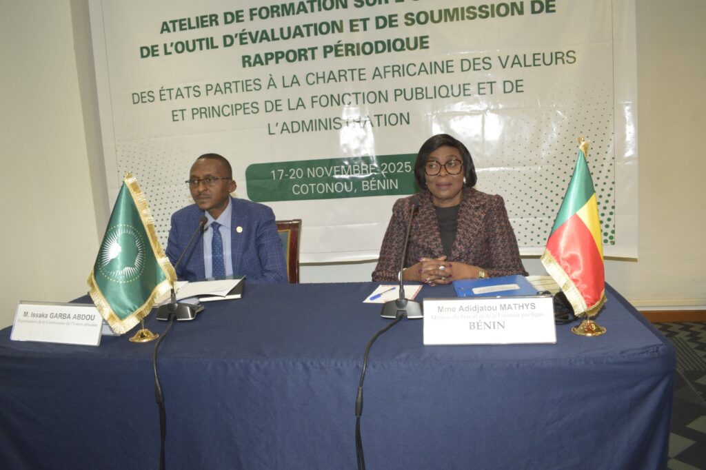 « Le Bénin a franchi une étape décisive en ratifiant la Charte africaine des valeurs et principes de la fonction publique et de l’administration le 28 mars 2019 ». En procédant à l’ouverture des travaux de l’atelier de formation consacré à l’utilisation de l’outil d’évaluation destiné aux États parties à la Charte africaine des valeurs et principes de la Fonction publique et de l’Administration, ce lundi 17 novembre, la cheffe du Ministère du Travail et de la Fonction Publique (MTFP) a salué une avancée qu’elle qualifie de « réalisation fondamentale ». Réunis autour d’experts, de cadres administratifs et de représentants d’institutions publiques du Bénin, les participants à l’atelier bénéficient, à Cotonou, d’une présentation détaillée de l’outil d’évaluation mis en place par l’Union Africaine (UA) pour mesurer le degré de conformité des États aux engagements contenus dans la Charte.