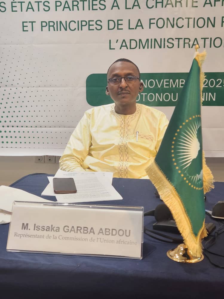 Photo : Le Représentant du président de la Commission de l’Union Africaine, le Chef de la Division de la Gouvernance et des Droits de l’Homme, Issaka Garba Abdou, à Cotonou, ce jeudi 20 novembre