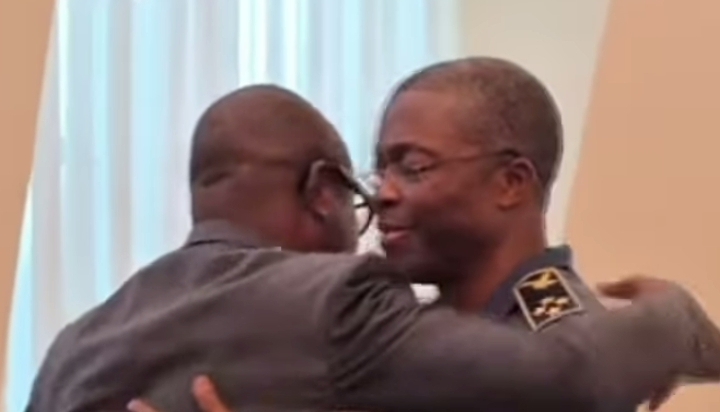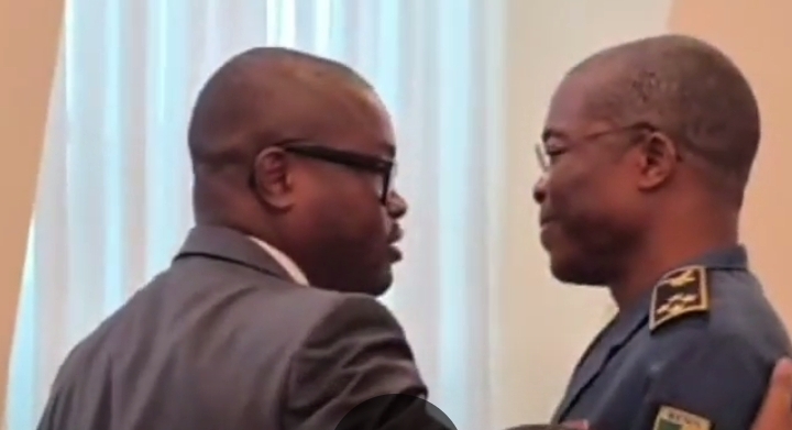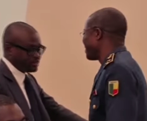 Photo : Le Général Bertin Bada (G) réconforté par le ministre d’État Romuald Wadagni (D), à Cotonou, ce lundi 8 décembre