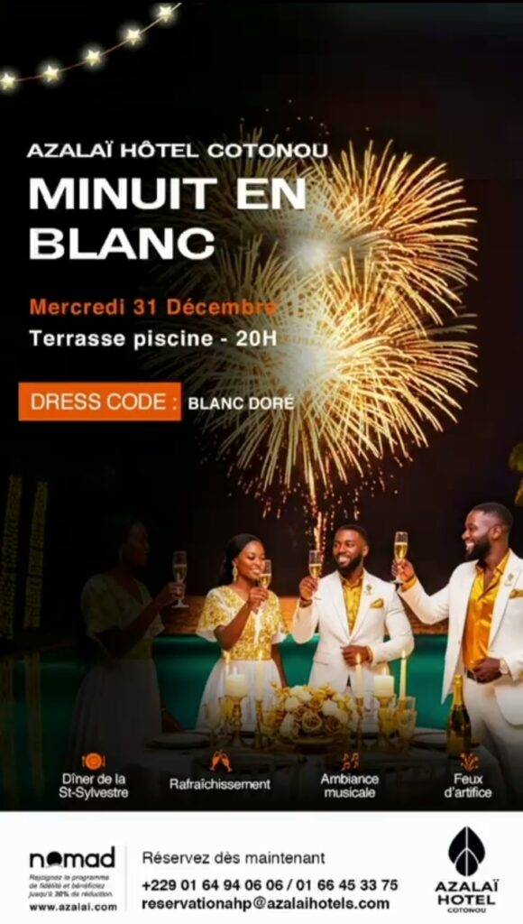 Ce qui distingue ces rendez-vous d’exception ? Des menus proposés à des prix défiant toute concurrence, accompagnés de cadeaux exclusifs, le tout dans le confort et le luxe d’un hôtel cinq étoiles. En décembre, Azalaï Hôtel de Cotonou ne se contente pas de célébrer les fêtes : il les sublime, les réinvente, offrant à ses hôtes des souvenirs inoubliables au cœur de la capitale économique béninoise plus splendide que jamais. La rédaction differenceinfobenin.com et celle du journal quotidien « Différence Info » du Groupe de presse « DIFFÉRENCE », ici à Porto-Novo, ont d’ores et déjà pris le rendez-vous. Et vous très Chers/Chères Lecteurs/Lectrices ?