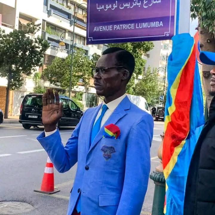 Quelques mois plus tard, l’histoire bascule. Lumumba est exécuté en 1961 par des rebelles, avec la complicité de la CIA et d’un certain Mobutu Sese Seko, ancien président de la RDC. Sa mort brutale fait de lui un martyr de l’indépendance africaine et une conscience politique dont l’ombre plane encore sur le continent. Au Maroc, cette mémoire s’inscrit durablement dans le paysage urbain. Dans les années 1970, la rue de la Marne à Rabat est rebaptisée Avenue Patrice Lumumba, consacrant la place du leader rd-congolais dans la mémoire collective marocaine. Ci-dessous, en images, le supporter rd-congolais Michel Kaku dit Lumumba pose dans la rue Avenue Patrice Lumumba, à Rabat, à chaque fois avant d’entrer au stade.