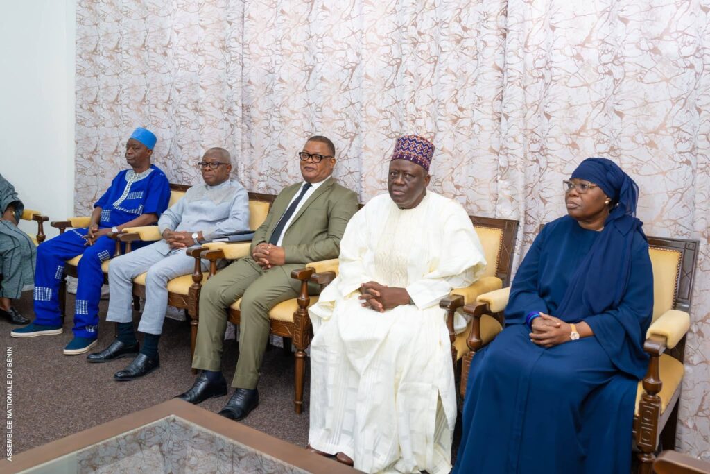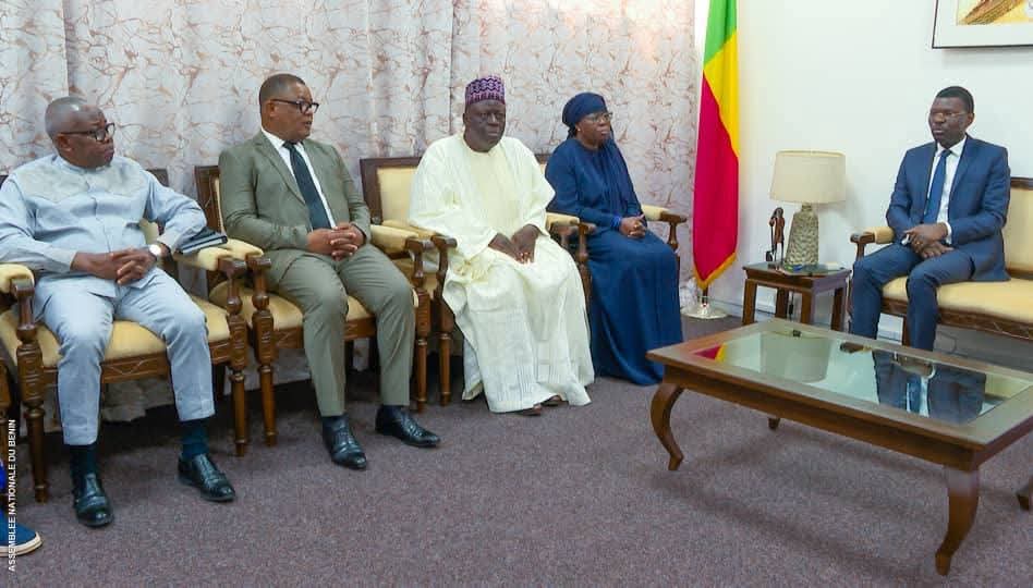 Le président de l’Assemblée nationale, Prof Joseph Fifamin Djogbénou, a reçu, ce mercredi matin 11 février, au Palais des Gouverneurs, à Porto-Novo, une délégation de haut niveau de l’Union Progressiste le Renouveau (UP-R). Une visite placée sous le signe des félicitations et du soutien politique. La délégation comprenait plusieurs figures majeures du parti majoritaire à l’hémicycle, notamment la Vice-présidente de la République, Mariam Chabi Talata épouse Zimé, l’ancien président de l’Assemblée nationale (9ᵉ législature) Louis Gbèhounou Vlavonou, ainsi que les députés Bonaventure Aké Natondé, Gérard Gbénonchi, Nouémou Domitien, David Houinsa, Bio Salako Tamou et le maire de Ouidah Christian Houétchénou.