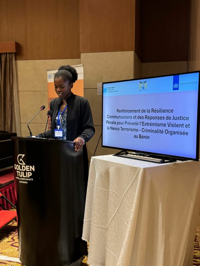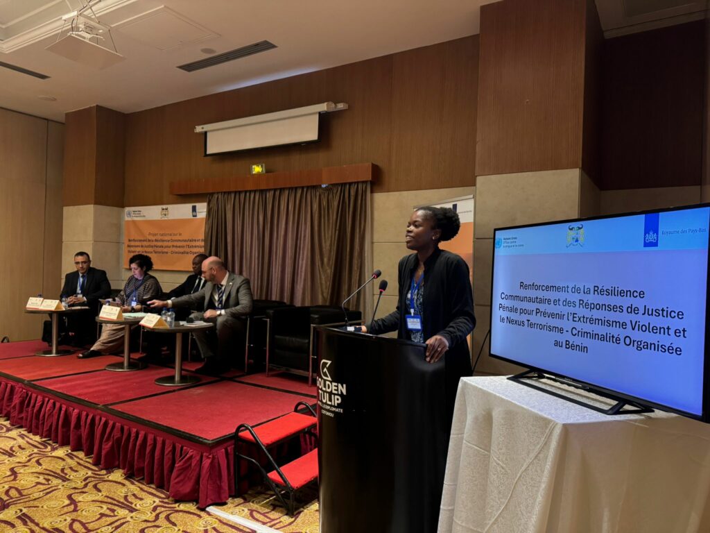 Venue de Vienne, Agathe Hazelart, experte en mise en œuvre et suivi de programme à l’ONUDC, a présenté les fondements du projet, ses objectifs stratégiques et son approche intégrée. La collègue de Ndeye Fary Fall, chargée de Programme associé ONUDC à Cotonou, a détaillé les axes prioritaires, notamment le renforcement des capacités des acteurs judiciaires et sécuritaires, l’amélioration de la coordination interinstitutionnelle, la consolidation des mécanismes de résilience communautaire et la lutte ciblée contre le nexus terrorisme–criminalité organisée. L’accent a été mis sur une collaboration étroite avec les institutions nationales et sur des interventions spécifiques dans les zones frontalières, considérées comme des espaces stratégiques dans la prévention de la radicalisation.