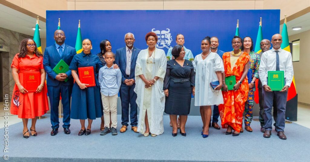 En présence des ministres des Affaires Étrangères, Olushegun Adjadi Bakary, et Garde des Sceaux Me Yvon Detchenou, les récipiendaires (Romulus Jean Énerve, Jean-Jackson Daniel, Vives Martinez Irving, Romulus Vanessa, Delano Michael Davis, Gunter Ramone Deangeletis, Regina Alexia, Polissaint Frantz et Sidney Hermionne Davy) ont reçu leurs attestations de nationalité. Ces documents officiels consacrent juridiquement leur appartenance à la nation béninoise, matérialisant ce que les autorités qualifient de « lien indissoluble avec la terre de leurs ascendants ».
