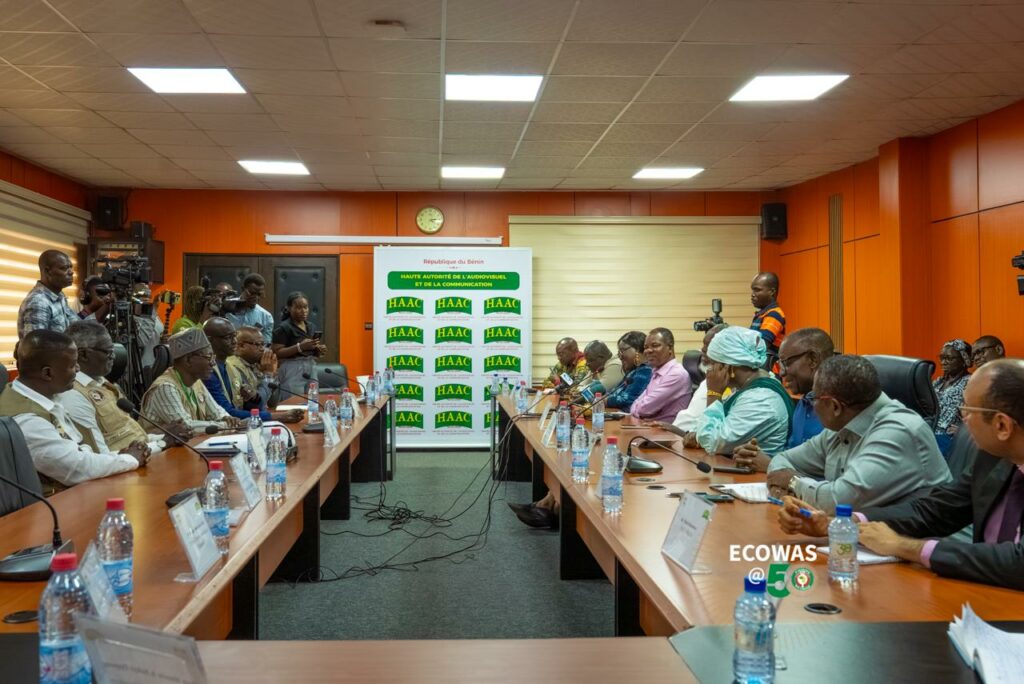 Photo : La délégation de la CEDEAO en famille avec les membres de la HAAC, à Cotonou, ce lundi 9 avril