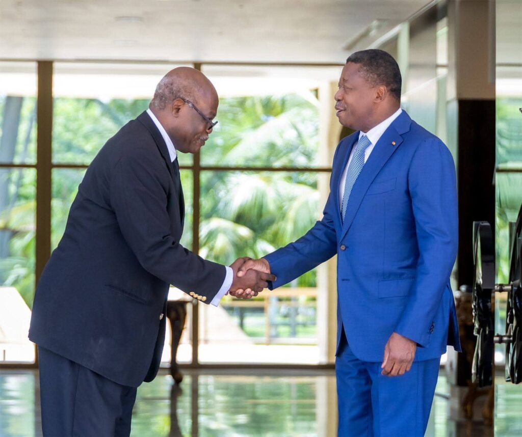 Photo : Le président du Conseil togolais, Faure Essozimna Gnassingbé, et le président de l’APF, Hilarion Etong, à Lomé, ce vendredi 10 avril