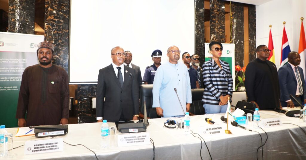 La réunion statutaire du Conseil judiciaire de la Communauté Économique des États de l’Afrique de l’Ouest (CEDEAO) s’est ouverte ce jeudi 23 avril, à Freetown, la capitale de la Sierra Leone, avec en ligne de mire le renforcement de la justice, des droits de l’homme et de l’État de droit dans l’espace communautaire. Organisée par la Direction des Affaires Juridiques de la Commission de la CEDEAO, cette session de deux jours réunit les présidents des cours suprêmes des États membres, ou leurs représentants, autour des défis liés au fonctionnement et à l’indépendance de la Cour de Justice de la Communauté.