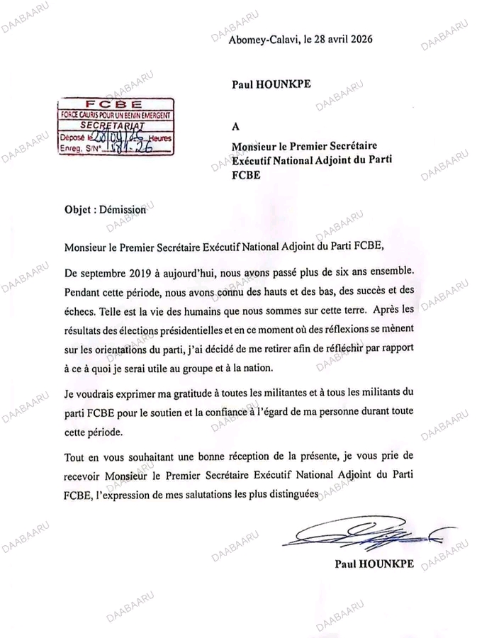 Au sein des FCBE, cette démission parvenu à la rédaction differenceinfobenin.com et du quotidien « Différence Info » du Groupe de presse « DIFFÉRENCE », à Porto-Novo, ce mardi 28 avril, ouvre une période d’incertitude. Héritier d’une formation historiquement ancrée dans l’opposition, Paul Hounkpè laisse derrière lui un parti en quête de repositionnement stratégique après un nouveau revers électoral. Dans sa lettre, il a tenu à exprimer sa « gratitude » aux militants pour leur « soutien et leur confiance » durant son mandat, sans préciser les contours de la transition à venir.