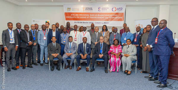 Photo : Les participants en famille, à Cotonou, ce lundi 2 février Un atelier régional de formation consacré au blanchiment des avoirs criminels et au…