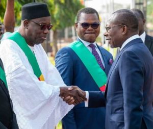 Photo : Le Vice-président de l’Assemblée nationale, Basile Léon Comlan Ahossi, saluant le président Patrice Talon, à Porto-Novo Ce week-end a été très mouvementé sur…