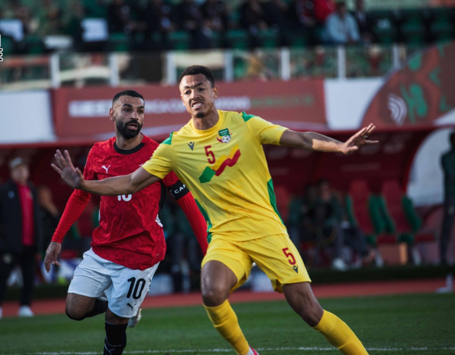 Photo : Yohan Roche en défense contre le capitaine des Pharaons, Mohamed Salah, à Agadir, ce lundi 5 janvier Le Bénin n’est pas passé loin…