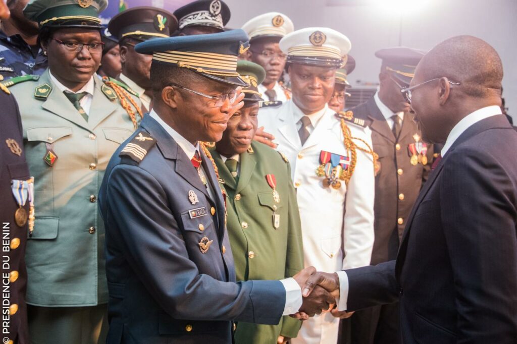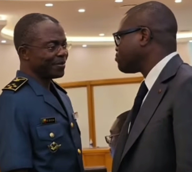 Photo : Le Général Bertin Bada (G) réconforté par le ministre d’État Romuald Wadagni (D), à Cotonou, ce lundi 8 décembre L’atmosphère était empreinte d’une…
