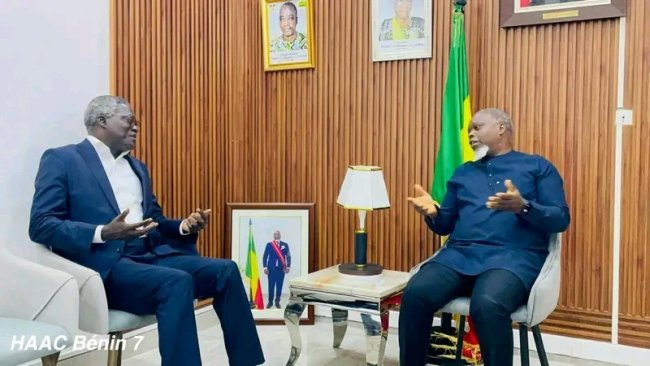 Photo : Le Représentant Résident de la CEDEAO au Bénin, Amadou Diongue, et le président de la HAAC, Édouard Loko, à Cotonou, ce lundi 10…