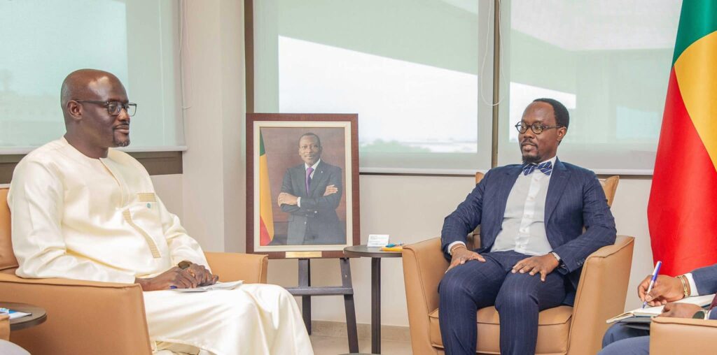 Photo : Le ministre des Petites et Moyennes Entreprises, Modeste Tihounté Kérékou, et le Représentant Résident de l’UNICEF, Ousmane Niang, à Cotonou, mercredi 29 octobre…