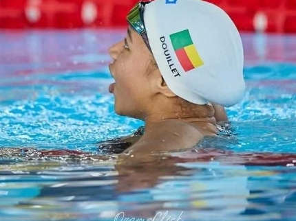 Photo : La jeune athlète nageuse béninoise, Ionnah Douillet, dans la piscine à Accra Ils ont décroché 56 médailles au total dont 20 en Or.…